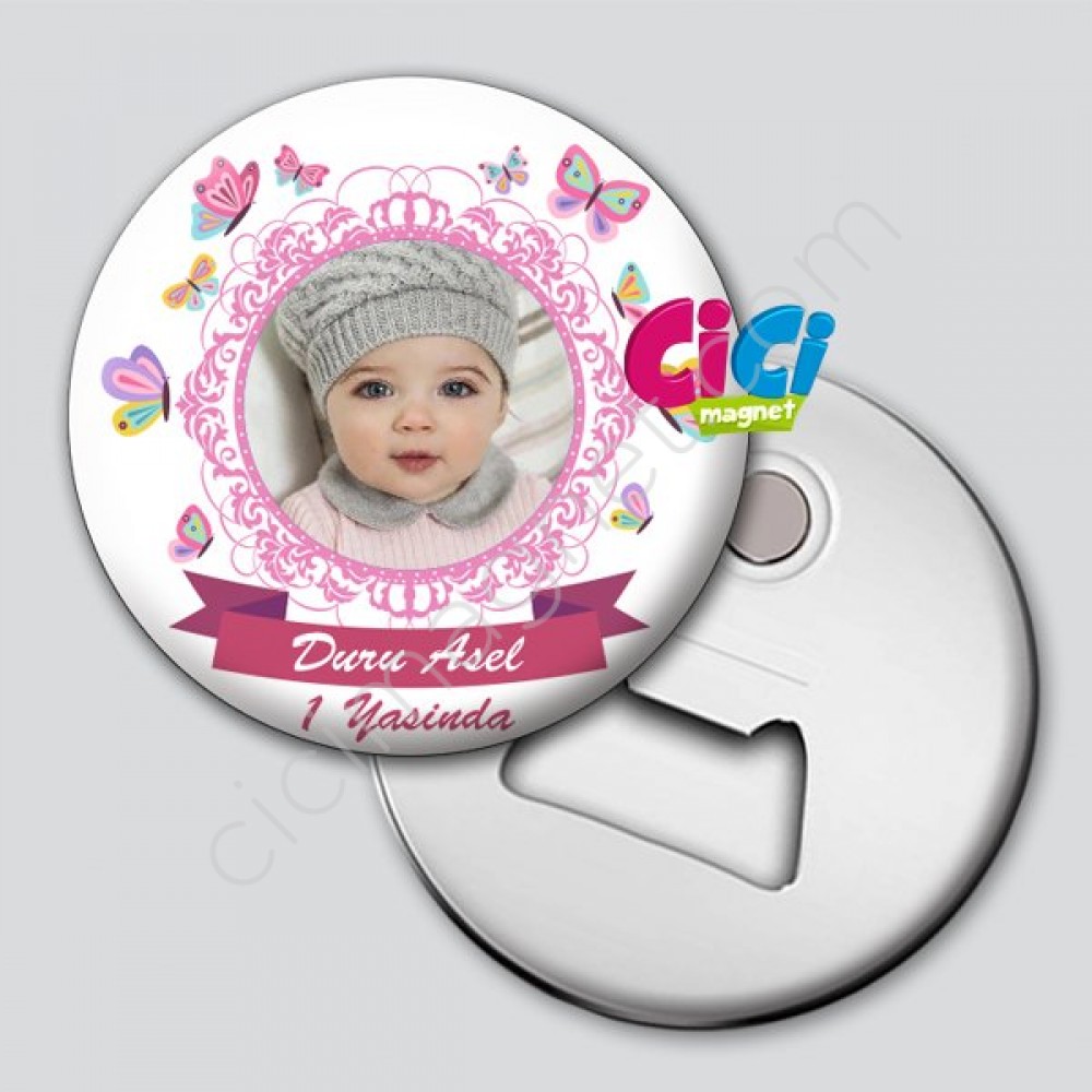 Kelebek Temalı Kız Bebeklere Özel Fotoğraflı Açacaklı Magnet