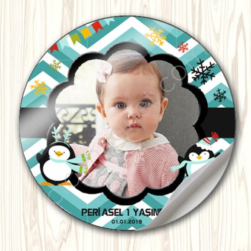 Penguen Temalı Doğum Günlerine Özel Sticker Etiket